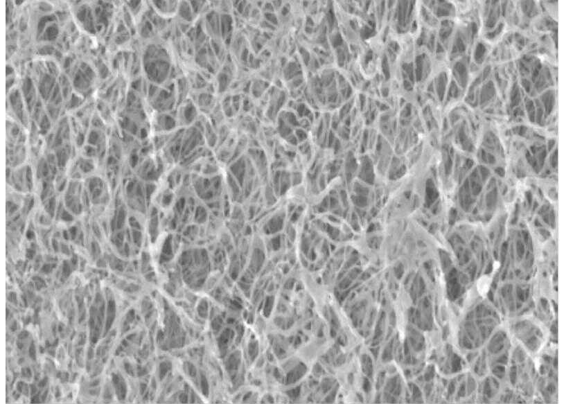 Collagen typeⅠをPBS(-)で中和し、37℃で再構成させた線維のSEM像(×5000)