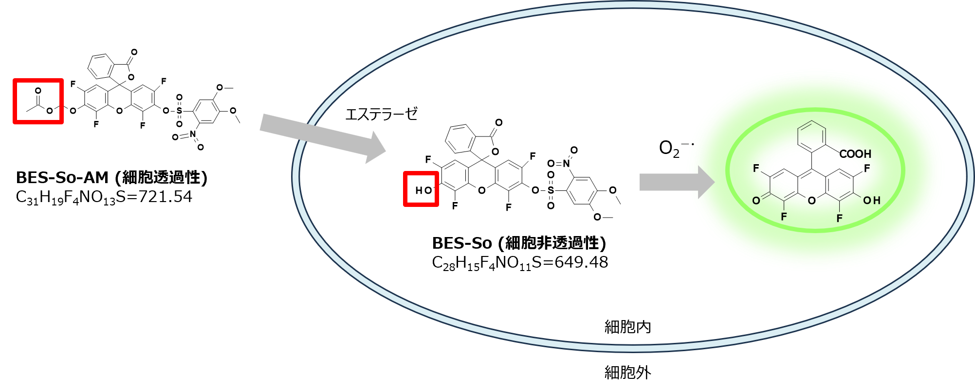 スーパーオキシド特異的蛍光プローブ BES-So-AM/BES-So