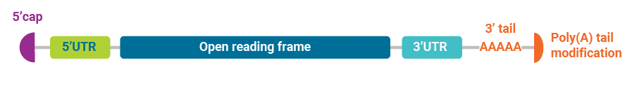 効率的な転写のためのCleanCap® 試薬、5’ と3’ のUTR、コード配列、120-ntのPoly(A)tailを含む