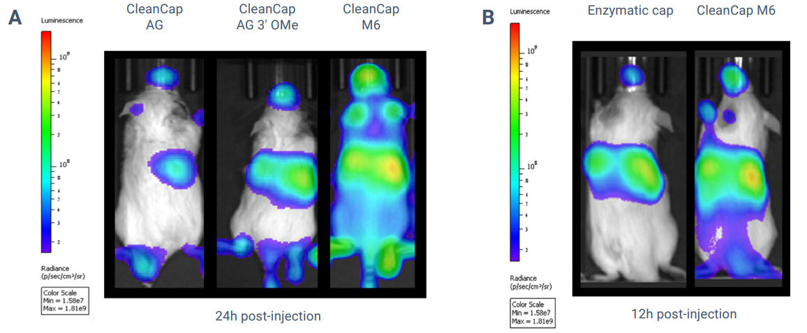 | CleanCap® AG(3' OMe) CleanScript™ IVT kit | CleanCap® M6 IVT kit, High Yield | |