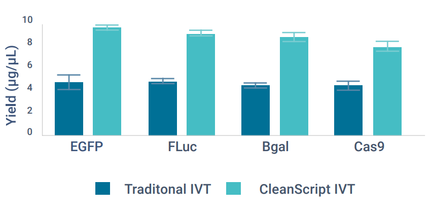最適化されたIVTによりCleanCap® AG (3' OMe) のmRNA収量が増加