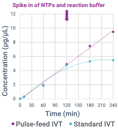 Pulse feedingによりCleanCap® M6のmRNA収量が増加