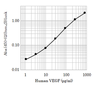 本製品は検出感度が高いため、数 pg/mLのVEGFを定量検出できた。