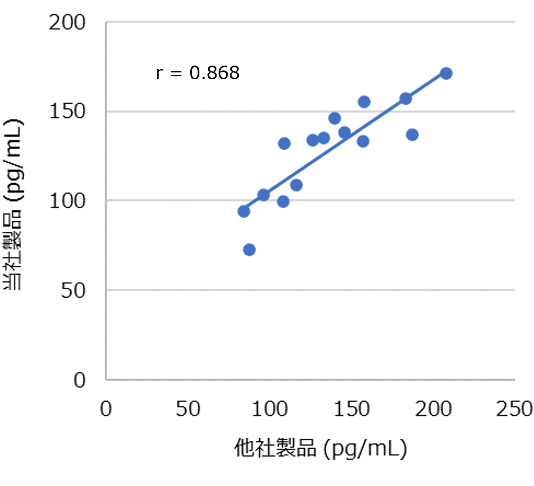 また、本製品と他社製品には高い相関が確認できた。