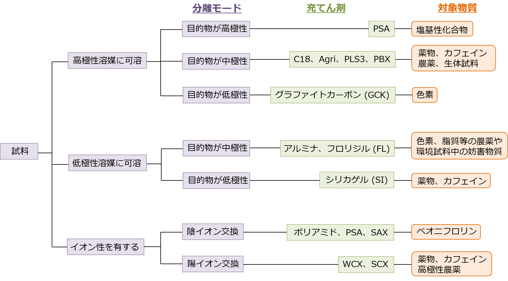 固相抽出を成功させるには、目的物質の特性にあった充填剤を選択することが重要です。