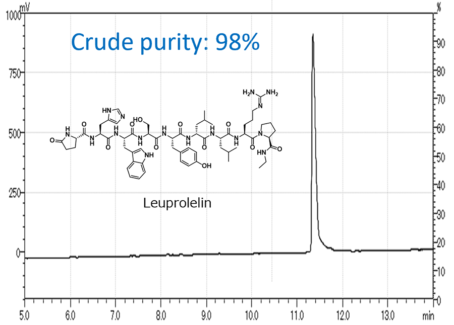 - 98%以上の高純度で粗体ペプチドを合成