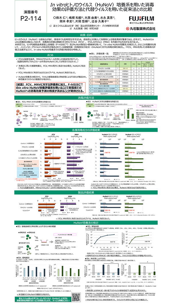 2025/7/10~7/12 | 第40回 日本環境感染学会総会・学術集会 | In vitro ヒトノロウイルス (HuNoV) 培養系を用いた消毒効果の評価方法と代替ウイルスを用いた従来法との比較 |