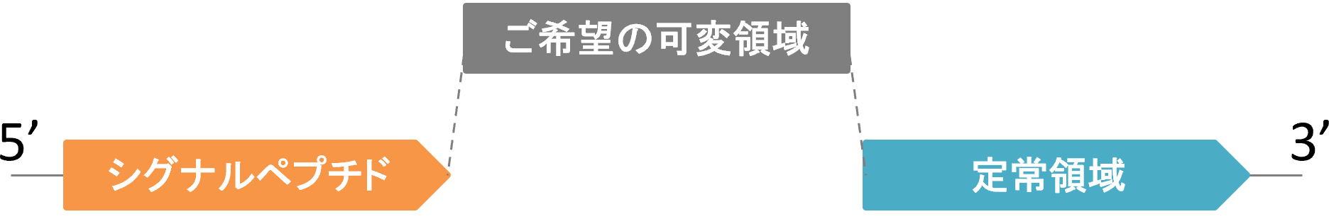抗体の発現量向上のために、複数のプロモーターやシグナルペプチド等を最適化したGENEWIZの抗体発現カセットベクターを無料で利用可能です。ご希望の定常領域を含むベクターを選択することも、可変領域から定常領域までを指定配列で合成することも可能です。