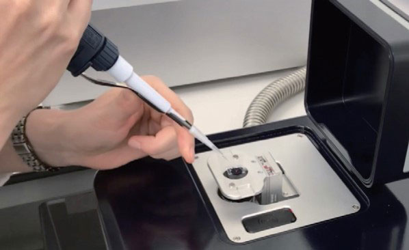 - 測定操作は、マイクロピペットでサンプル溶液をガラスプレートに置くだけの簡単な操作です。