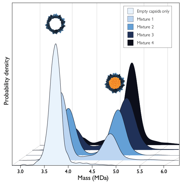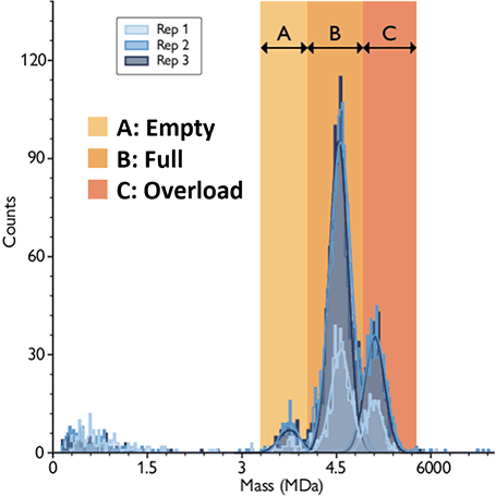 SamuxMPは、あらゆる血清型のAAVのEmpty/Fullカプシド比、および部分的に充填されたカプシドと過剰に充填されたカプシドの量を正確に測定します。また、不純物や凝集体を検出し、大まかなカプシド力価の推定値を得ることができます。