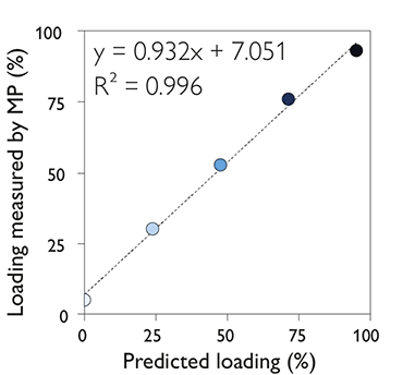 充填比率の異なる (0~95 %) AAVカプシドを準備し、SamuxMPで測定しました。