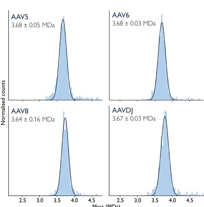 下図は、4つの異なるAAV血清型の空のAAVカプシドの測定結果です。