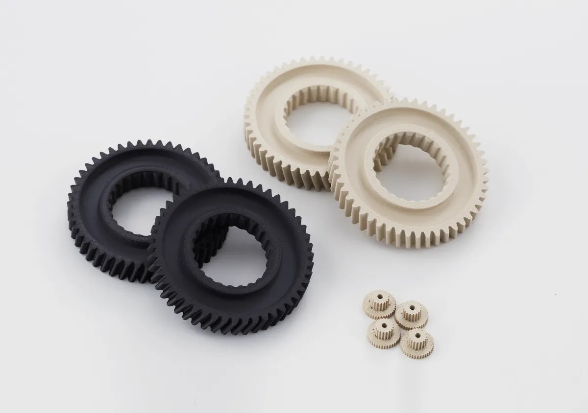 高温帯域での高速造形は、実用的な時間でのPEEKパーツ製作を可能とする。積層ピッチ0.05〜0.2 mmの造形は、従来の3Dプリンタでは実現の難しかったPEEK部品を高精細に出力可能。