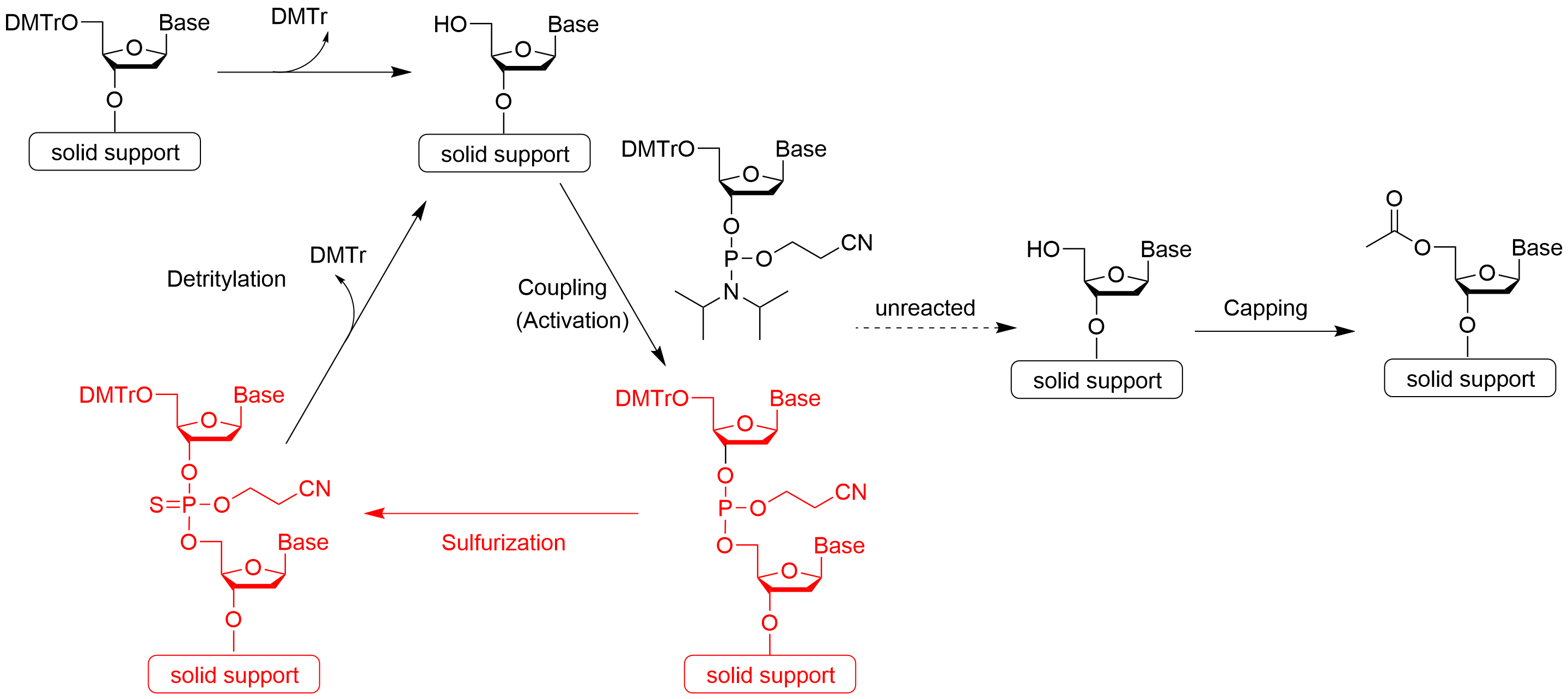 Using sulfurizing agent, the oxygen atom in the phosphate diester is substituted by a sulfur atom to give thiophosphate-based nucleotide. Thiophosphate nucleotide has good potential for nucleotide drugs. The sulfurizing reagents used in the phosphoramidite method are available.
